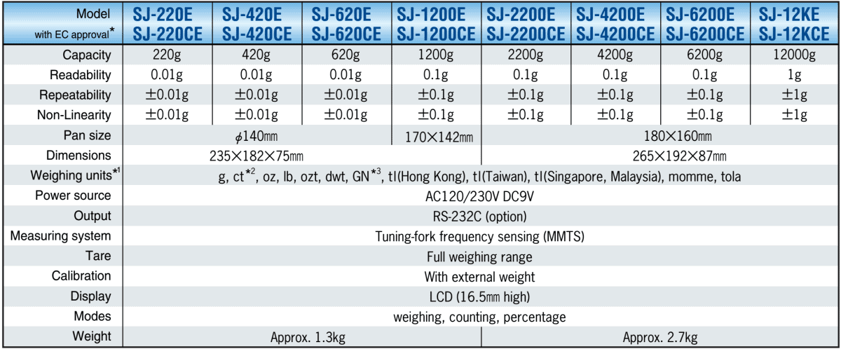 Thông số kỹ thuật của dòng cân SJ ViBRA Shinko: